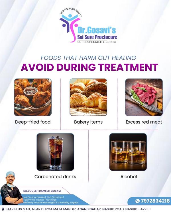 Certain foods can slow gut healing during treatment. Deep-fried foods, bakery items, red meat, alcoh...