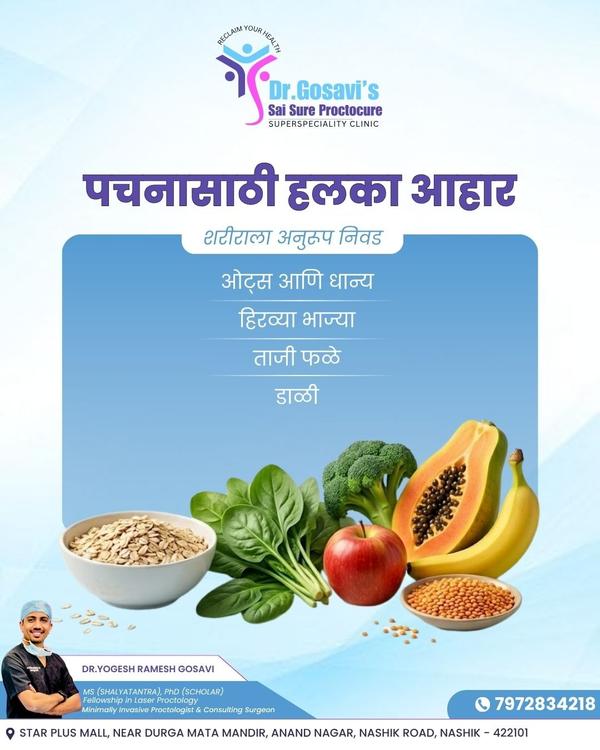 पचनासाठी हलका आणि पौष्टिक आहार निवडा, निरोगी शरीरासाठी एक पाऊल पुढे टाका. Book an appointment today...